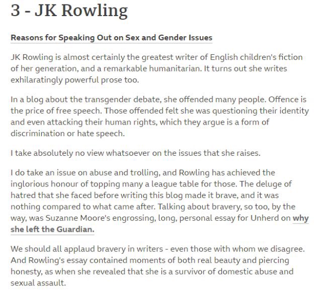 World’s most well known transphobe JK Rowling given an award by the BBC commemorating the ‘bravery’ of her hate speech while BBC staff prevented from attending Pride events because it was deemed too ‘political’. How did we get here? 🙈