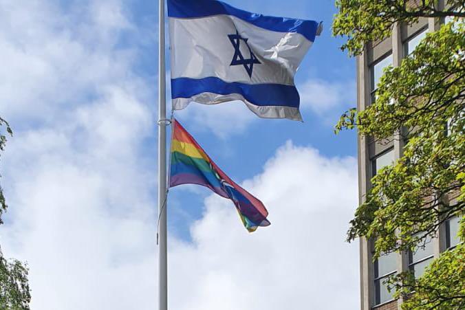 My colleague who lives near the Israeli Embassy told me that the Pride flag is a new addition since this morning.