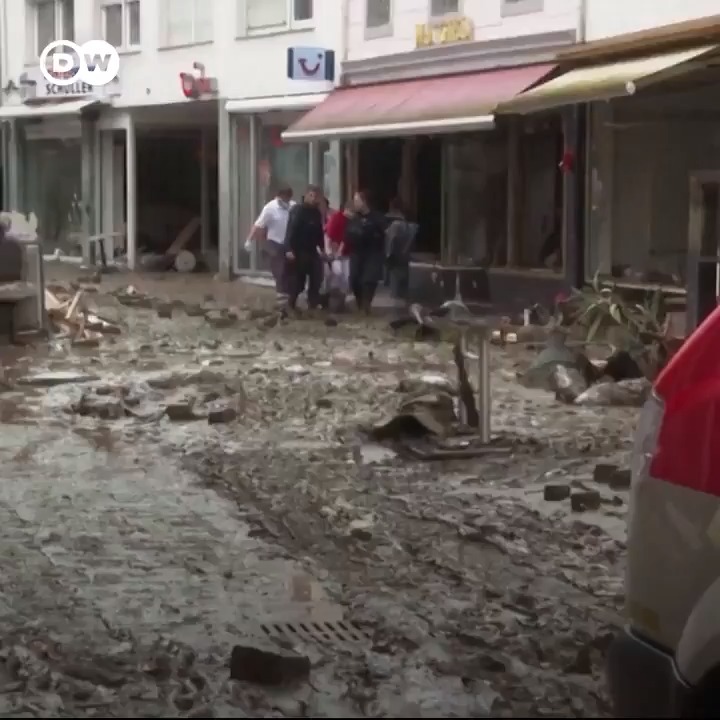 Floodwaters have left thousands homeless in towns in western Germany.