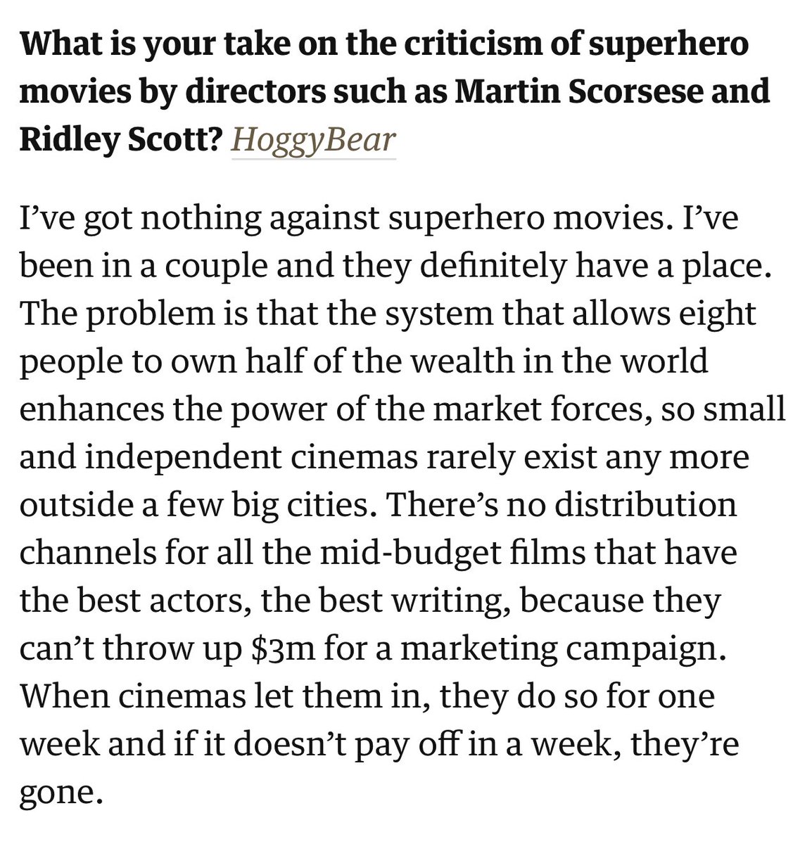 Stellan Skarsgård giving perhaps the best answer to the ubiquitous "what do you think about superhero movies" question;