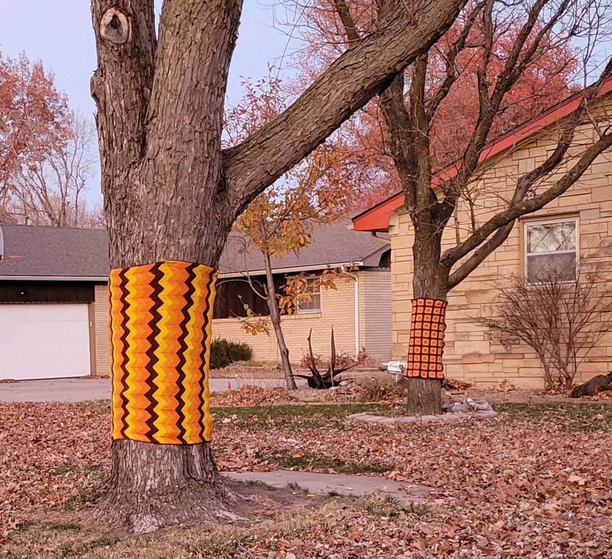 My neighbor knitted sweaters for all her trees.
