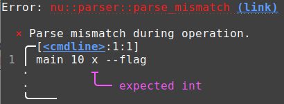 Playing around with adding commandline script args to @nu_shell's upcoming engine. Nice to be able to add type information to the script's main function and get nice errors when passed the wrong type of args.
