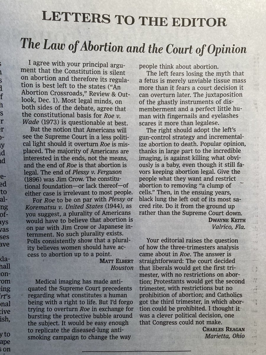 So kind of the WSJournal opinion editors, Misters Gigot and Heninninger, to find 3 other Misters to respond to their editorial advising the Supremes strike down Roe v Wade.