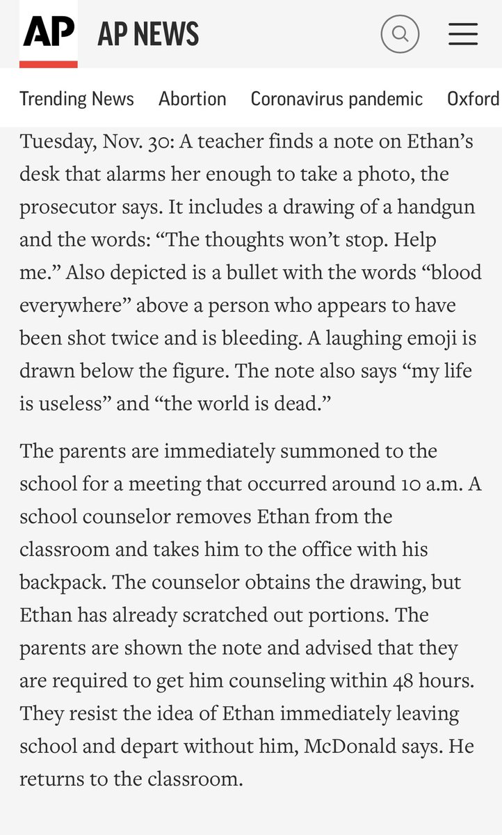 there a direct connection between right-wing mobs attacking school board meetings recently screaming “parents rights!” and this school shooter being allowed to stay in class