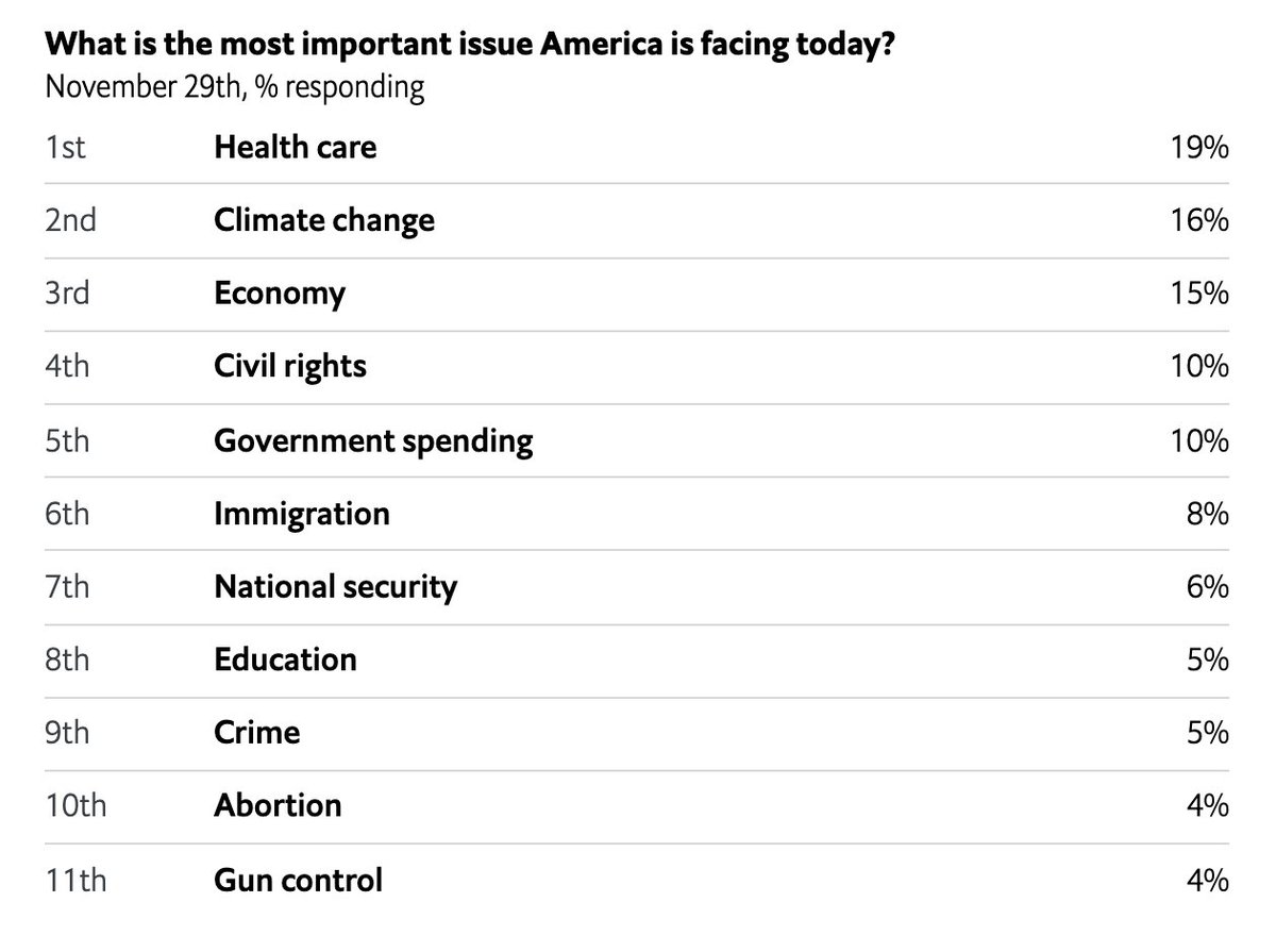 In a survey by @TheEconomist on 11/29, #ClimateChange comes in second only to health care (and above the economy) as "the most important issue America is facing today." 👀