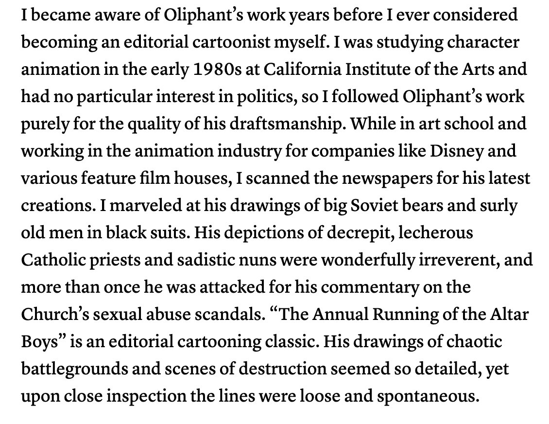 In 2016 I wrote a piece for @CJR about the great editorial cartoonist Pat Oliphant and the Pulitzers. But I talked about his art too (thread)
