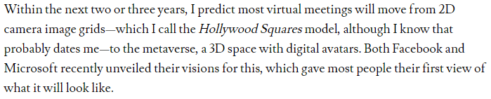 Might just all be part of his 5G rollout plans, but yeah, meetings in VR >> grids of faces.