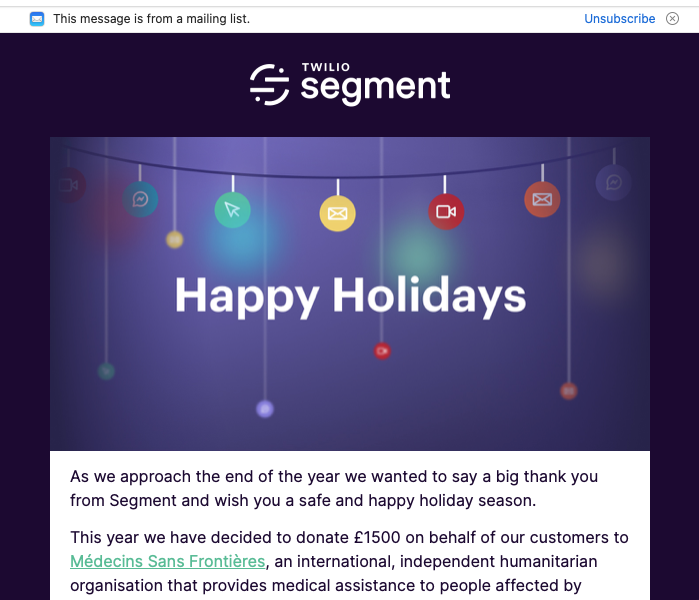 £1500? That’s a much bigger xmas donation than a mid-sized hair saloon would make. Well done @segment, I guess. Billions of valuation dollars clearly trickling down. But next time maybe skip the email brag?