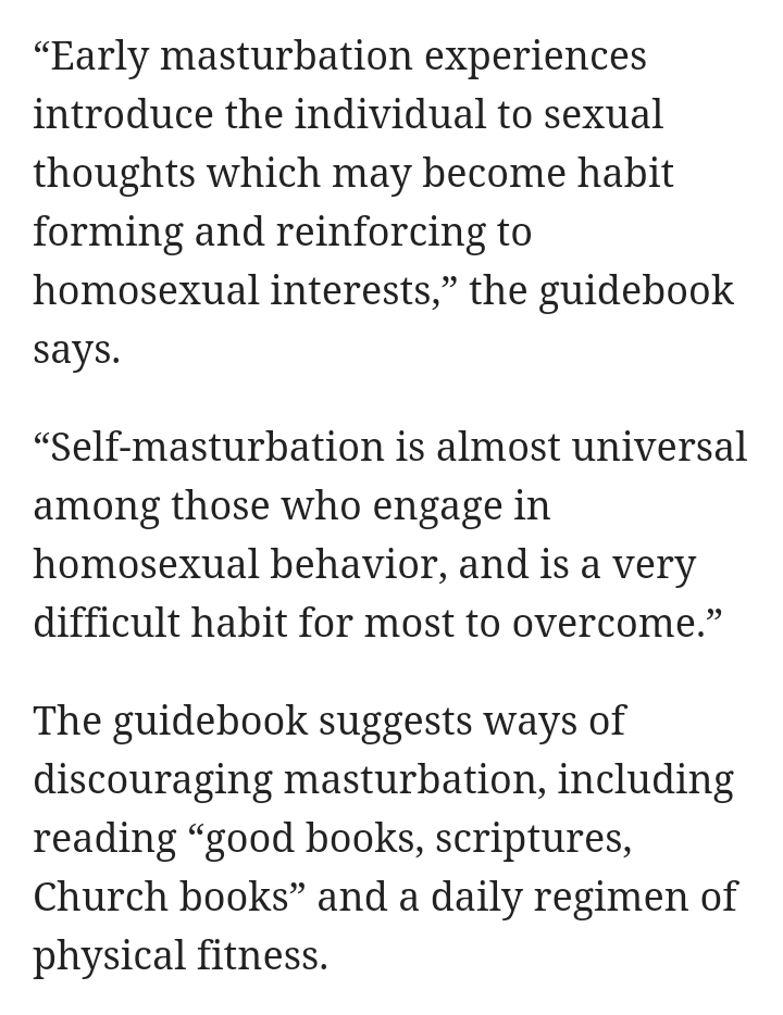 TODAY IN LGBTQ+ HISTORY: On December 16, 2017, a leaked 1981 Mormon Church guidebook reveals the Church taught its missionaries that masturbation often leads directly to homosexuality.