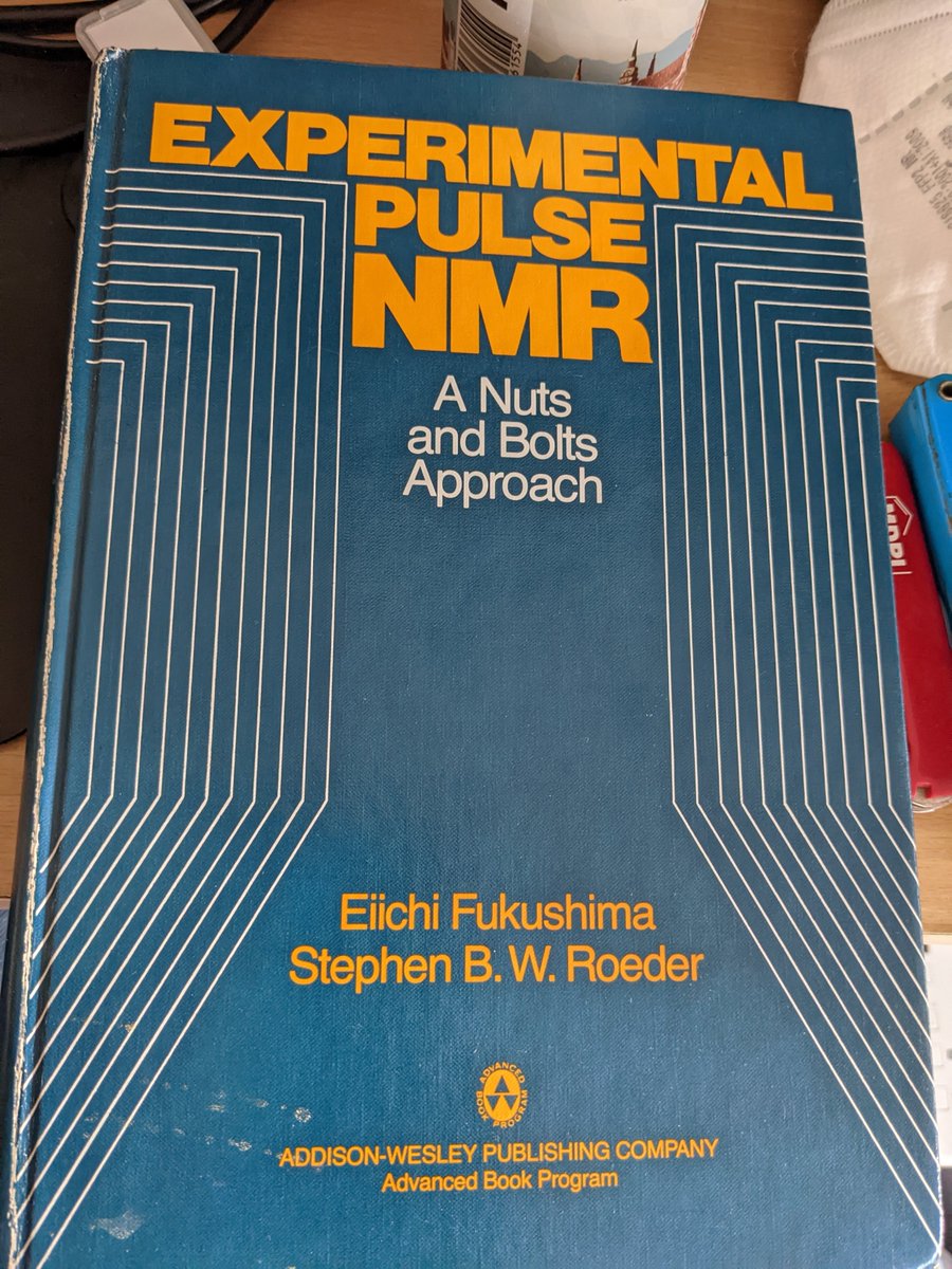 For those who don't know NMR spectroscopy is a hobby of mine. This classic, 40+ years old now, even tells you how to build a spectrometer. It's a pleasure to read a book written, and (hand) drawn, to introduce the reader to pleasures of instrumentation.