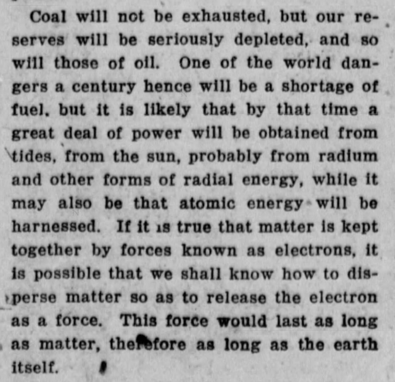 We'll use less fossil fuel and switch to sustainable energy sources and nuclear power, which is more or less accurate! Though George failed to foresee evil coal barons like Joe Manchin strangling the world by hanging on to dirty power for as long as possible.