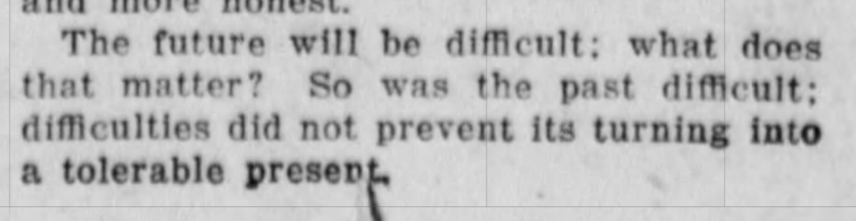 And that's where he leaves it! The future will be difficult, but so was the past, and it became a tolerable present. Yeesh, well, I hope your present is, at the very least, tolerable!