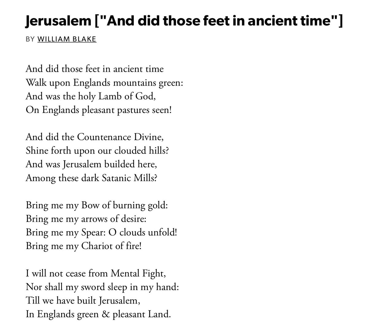 The hymn imagines an island of “dark Satanic mills” one day delivered into glory again someday. https://youtu.be/HyZSPci7bKU