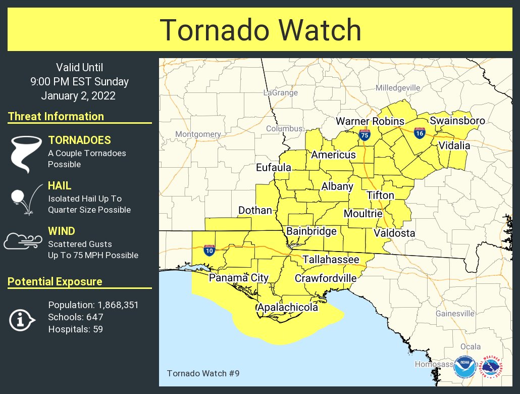 A tornado watch has been issued for parts of Alabama, Florida and Georgia until 9 PM EST
