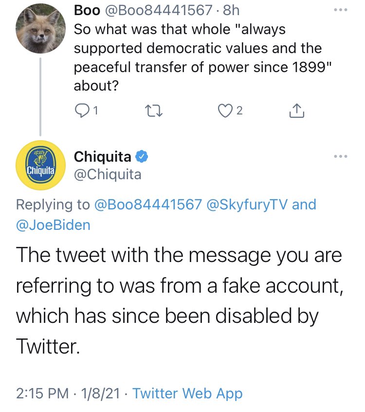 @banditelli @SenatorMeow @RealMMcHale Actual Chiquita was in damage control mode for a couple days