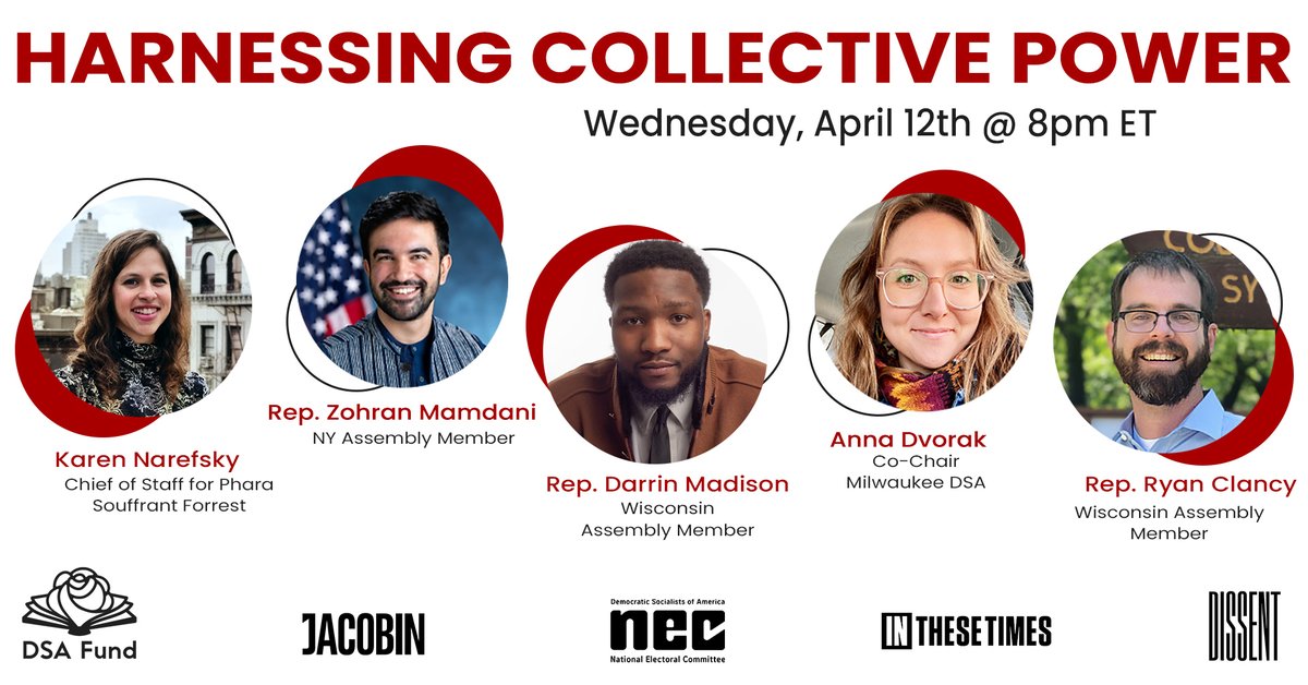 Join us on Wednesday, April 12th at 8pm ET/7pm CT for the fourth event in the DSA Fund’s series on How We Win. We’ll see how public officials and DSA organizers are working to win policy change in Wisconsin and New York.