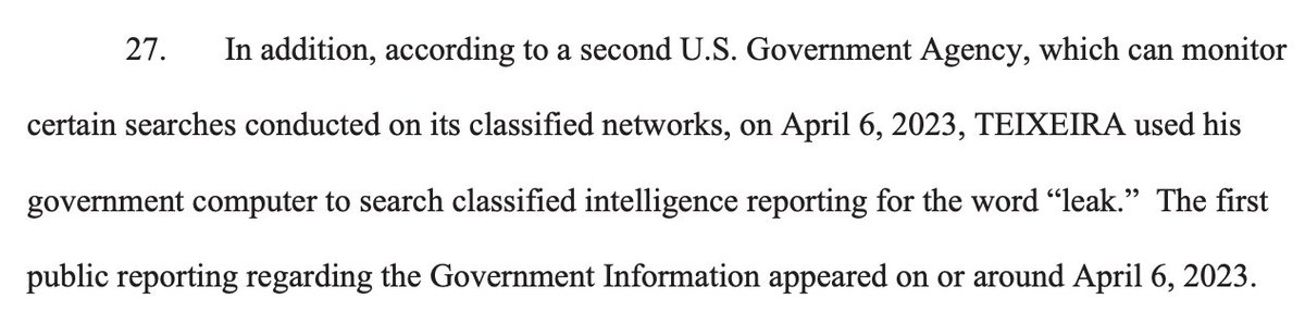 Oh dear. Jack Teixeira used his government computer to search the word "leak" on April 6-- the day the news became public