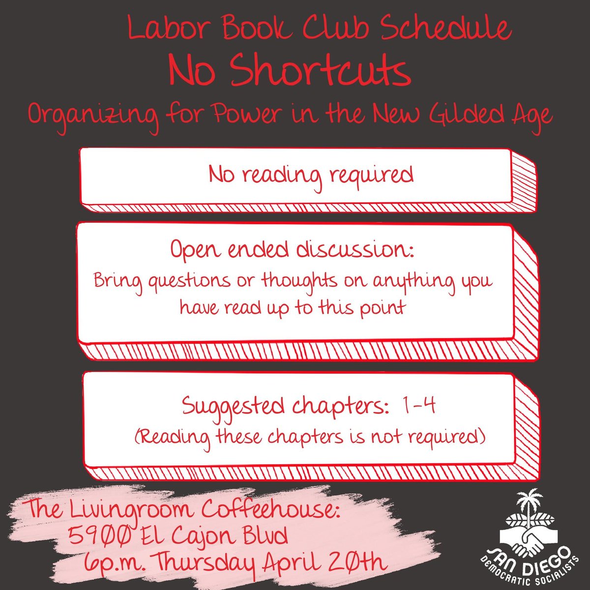Join the DSA San Diego Labor Working Group for our monthly book club this Thursday, April 20th at 6:30p.m. at the Livingroom Coffeehouse. We ask that attendees come with discussion questions or responses from anything the have read.