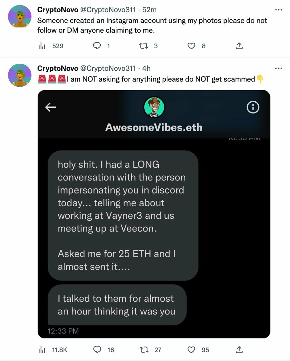 - CryptoNovo @CryptoNovo311 52m Someone created an instagram account using my photos please do not follow or DM anyone claiming to me. CryptoNovo @CryptoNovo311 4h 🚨🚨🚨I am NOT asking for anything please do NOT get scammed👇 (remote)