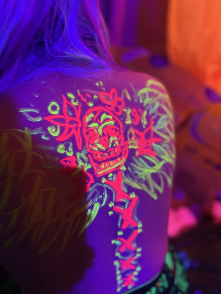 Sometimes I do ridiculous things like get persuaded to go to topless blacklight parties where people draw on and spray you with flurescent paint :)