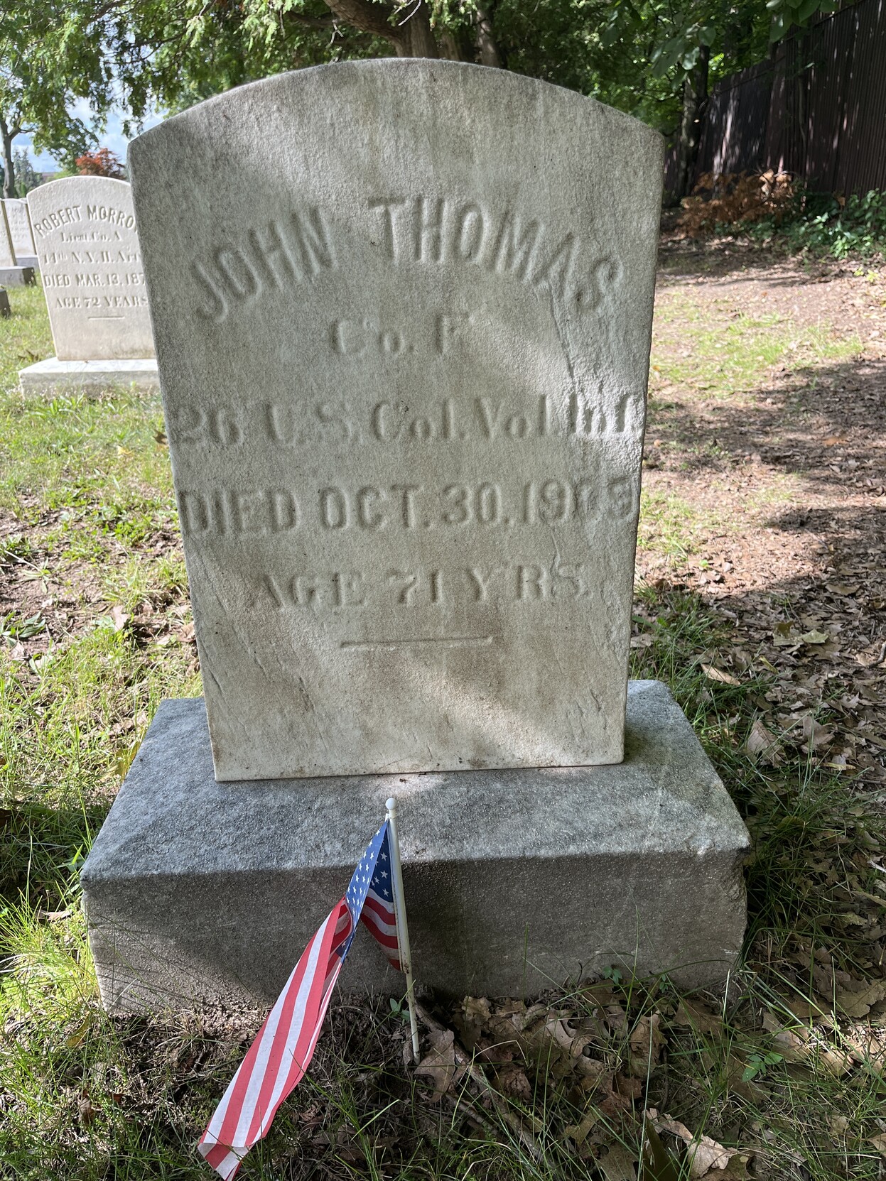 in his 20s, Trooper John Thomas risked death or eternal slavery by joining Company F, 26th United States Colored Volunteer Infantry and marching South with a musket on his shoulder. no braver people have lived than such as him, who answered his country’s call.