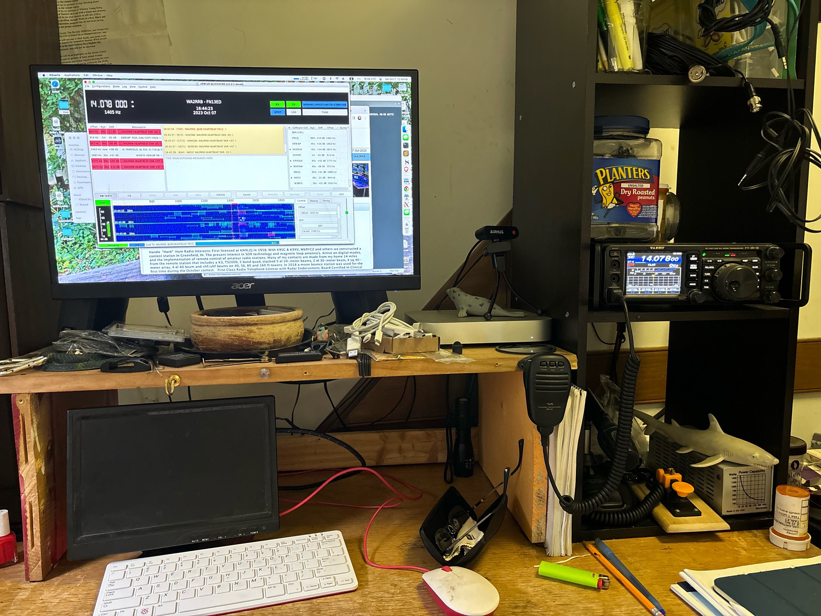 JS8Call is running on the Raspberry Pi & controlling the FT-981A, but through the magik of X-Window the GUI is running on the Mac Mini (or could be on any other Unix/Linux/Mac box or laptop anywhere)... I am going to remove the monitor/keyboard/mouse from the Pi to clean up my physical desktop a bit.