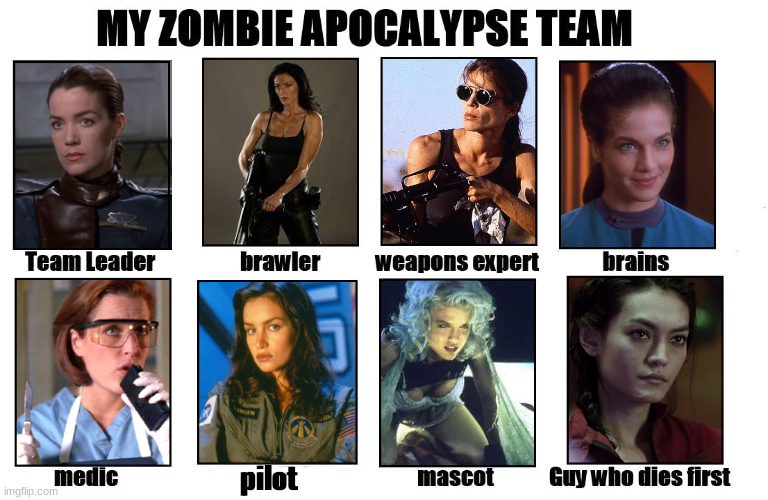 #meme #MyZombieApocalypseTeam #StrongFemaleCharacters #Babylon5 #Farscape #Terminator #DeepSpaceNine #TheXFiles #SpaceAboveAndBeyond #LexxTheDarkZone #TheExpanse