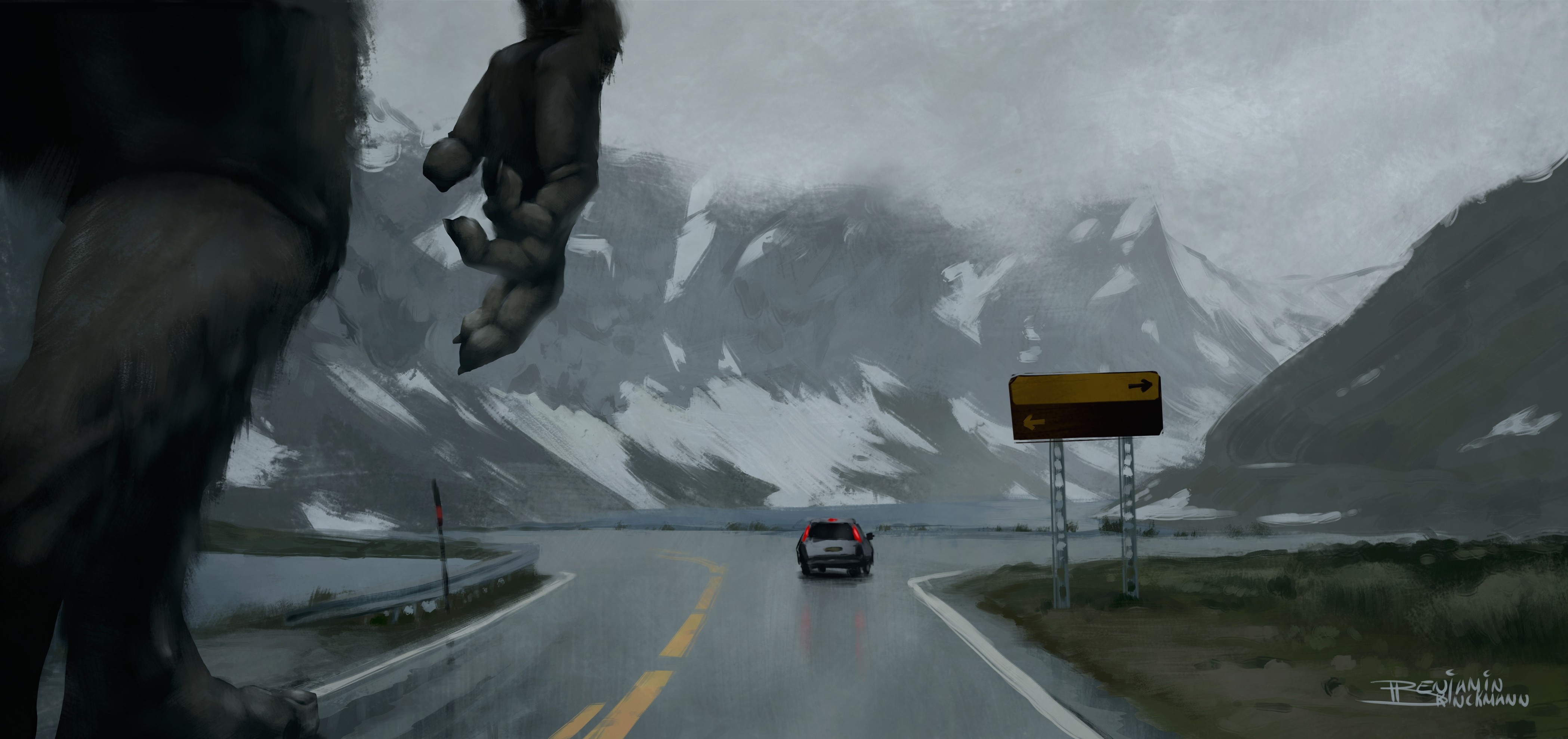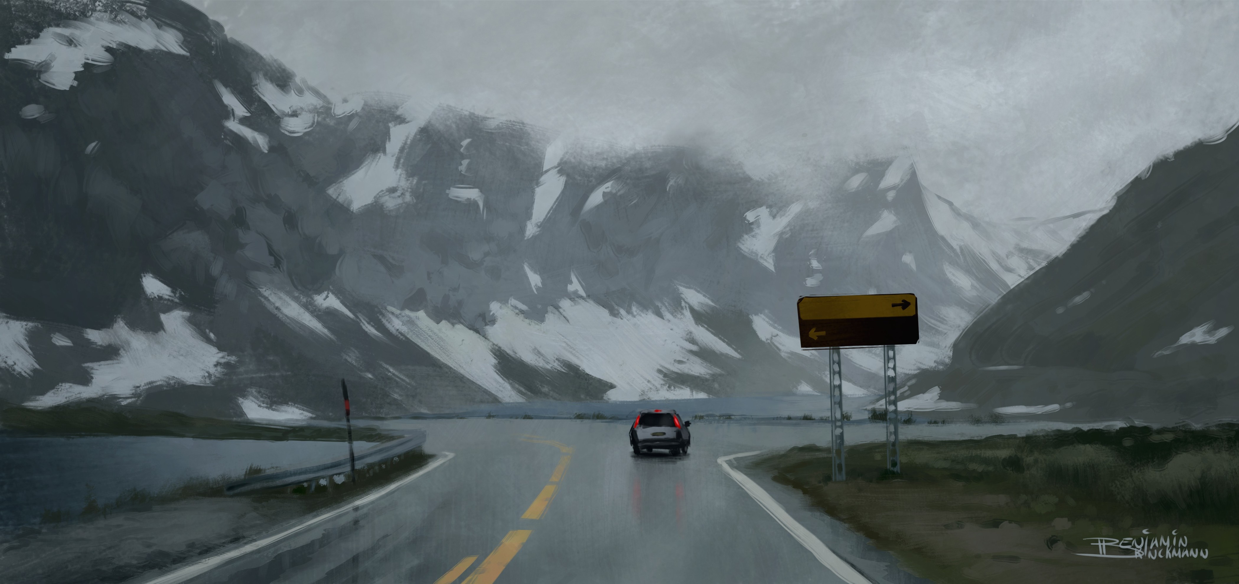 Another landscape painting based of a photograph I took last summer while on a road trip through Norway. My girlfriend suggested adding a troll to it, so I did :)
