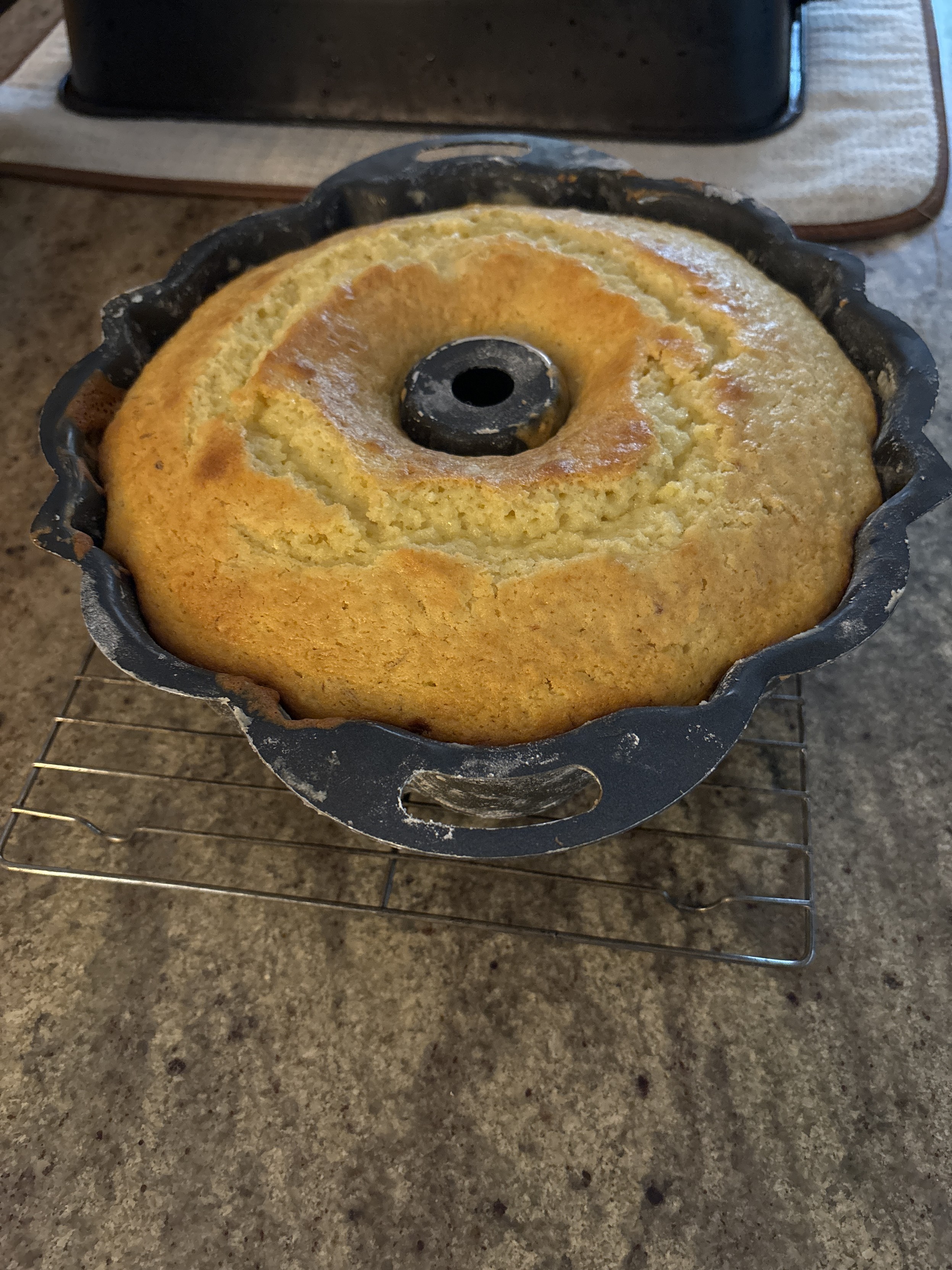 daughter & son-in-law visiting, so of course I’m baking … in this case, a lemon bundt cake (now cooling)