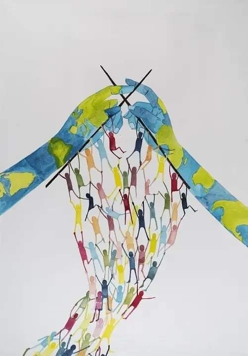 "My drawing represents the land that binds us and unites us.""Humans are woven together. If someone gives up, others fall. We are all connected to our planet and to each other, but unfortunately we are little aware of it. We are woven together. Other people weave alongside me my own story; and I weave theirs," said the young designer.