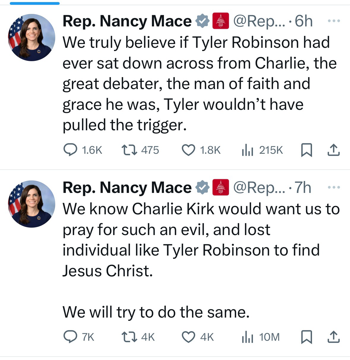 Oh, no no, not the Charlie Kirk guy. I mean, yes also the Charlie Kirk guy. But also I was talking about the Evergreen School shooting guy who killed 3 kids on the same day. And also the guy who killed Donald Trump's ear. And also the other guy who tried to kill Trump on a golf course. And also the guy who murdered Melissa Hortman and her entire family in their sleep. And also the guy who beat Nancy Pelosi's husband with a hammer.