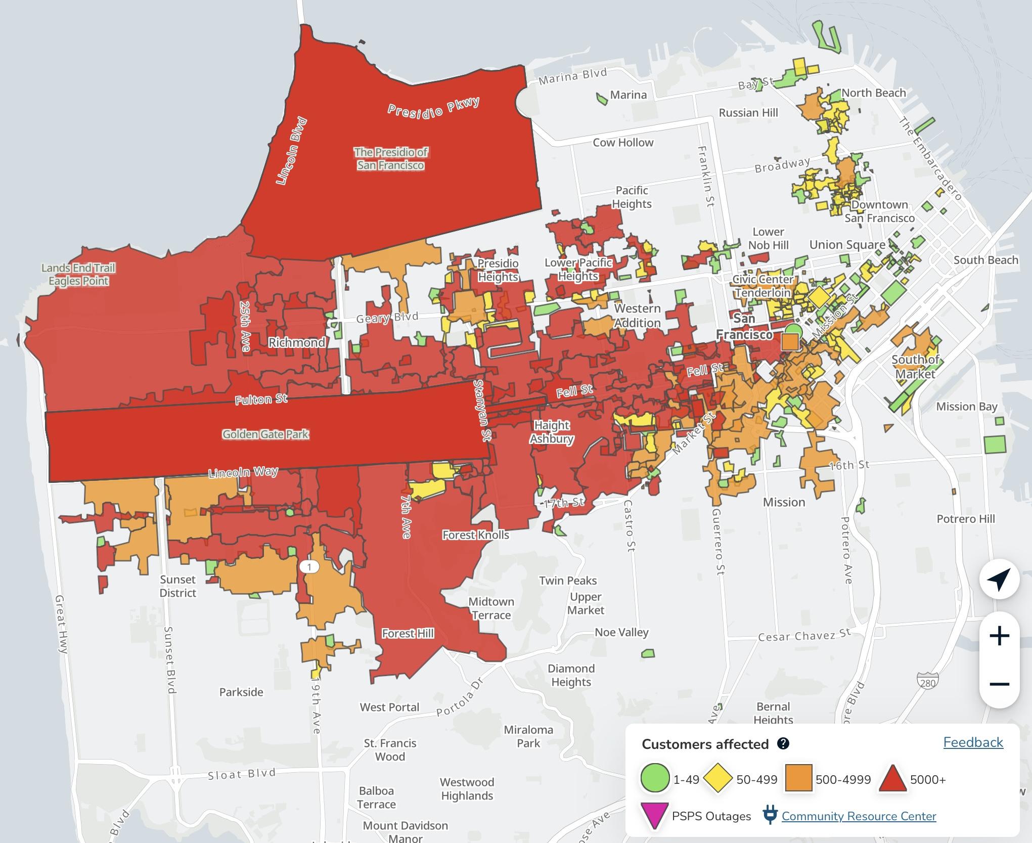 125,000 people — about a third of PG&E's customers in San Francisco — were without power on Saturday from blackouts across city.